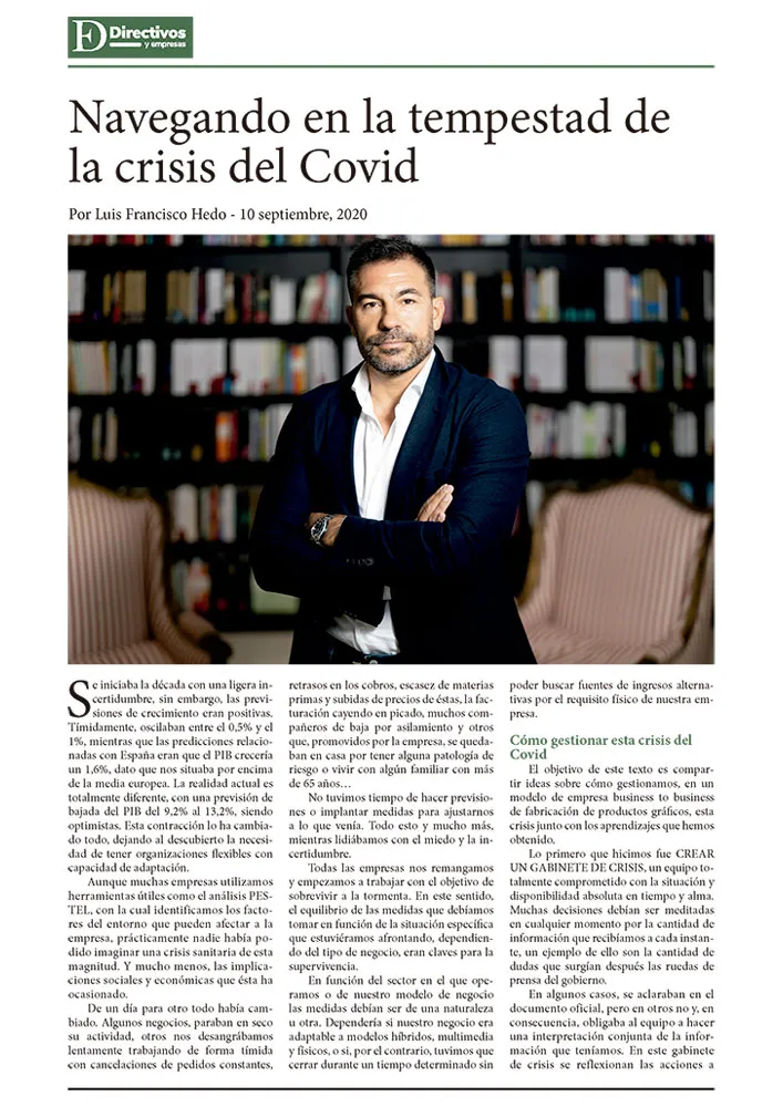 Luis Francisco Hedo Gómez (Madrid, 1983) es empresario, emprendedor y divulgador cultural. Dirige el Grupo Gómez Aparicio, una de las compañías históricas de la industria gráfica española, que se ha transformado en un referente europeo de impresión bajo demanda.