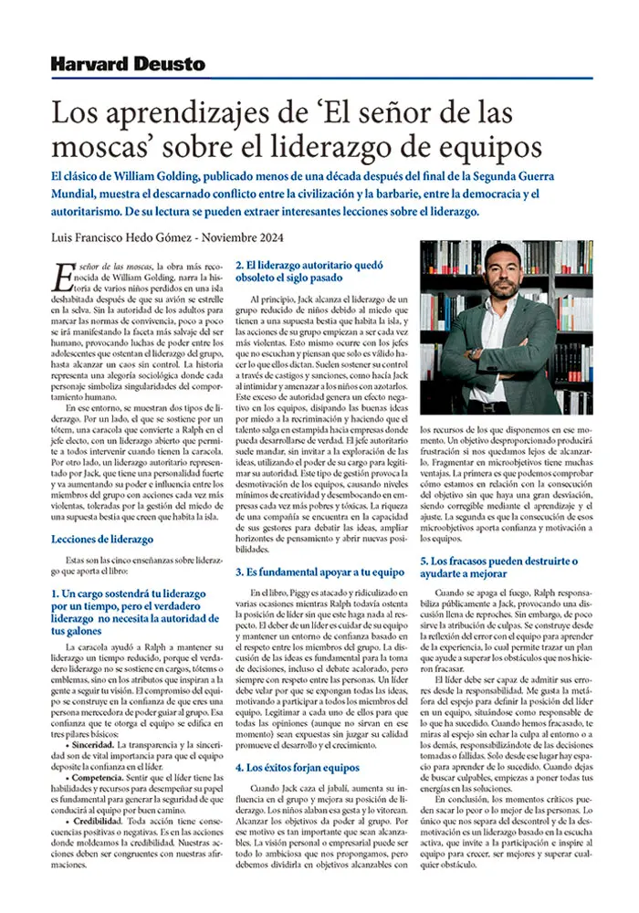 Los aprendizajes del libro ‘El señor de las moscas’ sobre el liderazgo de equipos.